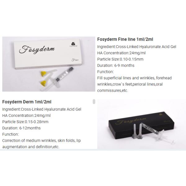 Fosyderm ha injectable dermal filler is a sterile , biodegradable ,viscoelastic, perfectly clear ,colourless , isotoni ,homogenized and monophasic gel implant. Is indicated for the correction of moderate to severe wrinkles .it is also indicated for perioral Wrinkles .lip contour and lip volume increase .it can be used for all areas of the face except he eye contour .it is recommended to inject filler into the mid to deep dermis to achieve a very natural look and long lasting correction.